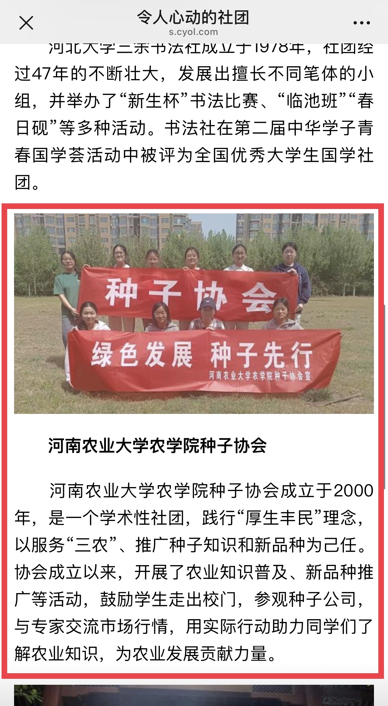种子协会自2000年成立以来,始终秉持“厚生丰民”理念,坚定不移地以服务“三农”、推广种子知识与新品种为使命。多年间,协会积极开展农业知识普及、新品种推广等系列活动,带领学生走出校园,深入种子公司参观学习,搭建起与专家交流市场行情的桥梁,让学生们在实践中汲取农业知识养分。