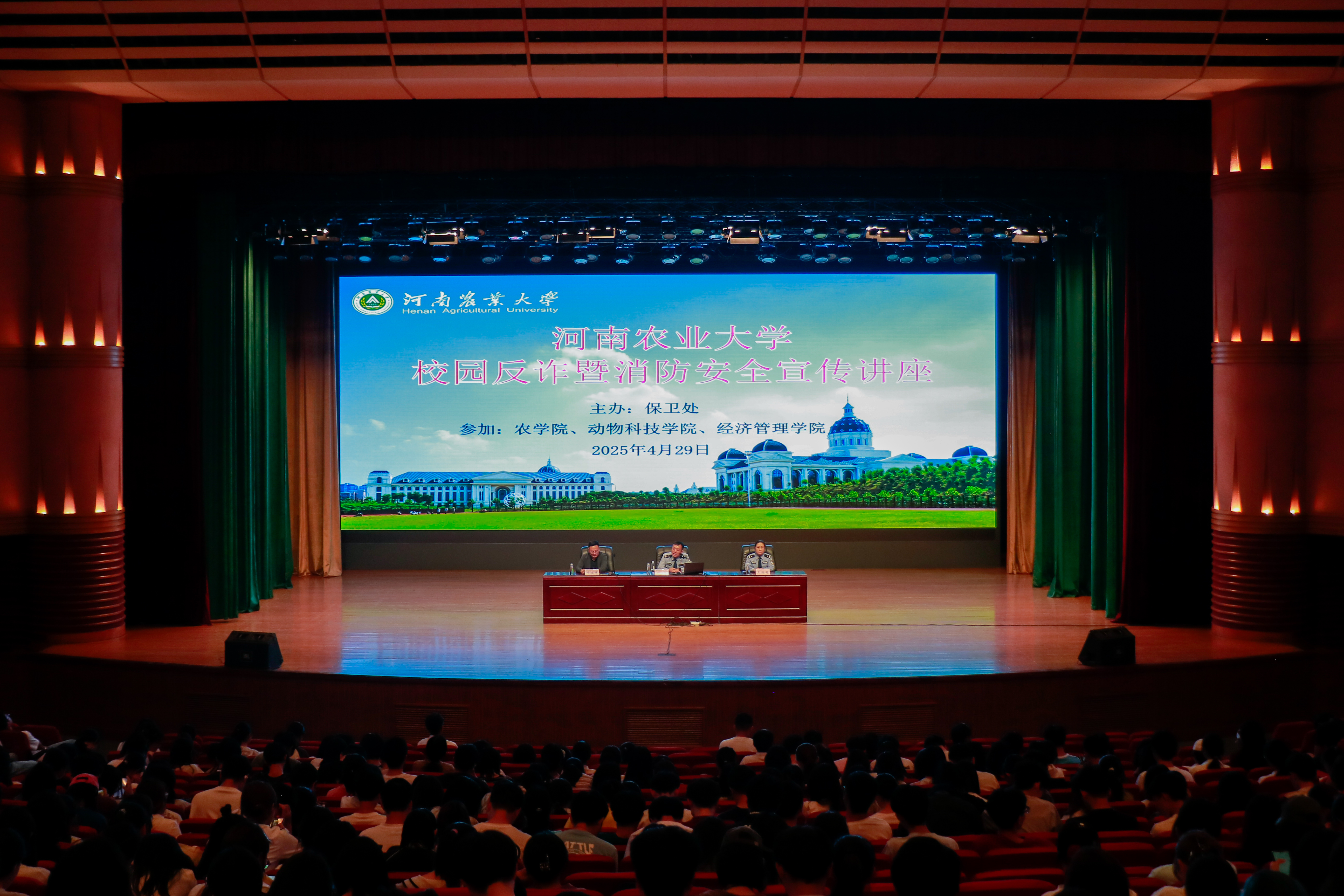 本网讯(通讯员 尹瑞然)为切实维护学生权益,提升学生防诈观念。4月29日下午,我校保卫处举行反诈、消防及学生日常安全主题讲座,本次讲座邀请到金水分局反诈大队队长刘庆、金水分局反诈骗中心反诈宣传民警王洪明、金水区消防救援大队消防科科长冉然为学生讲解反诈及消防知识,猫都论坛