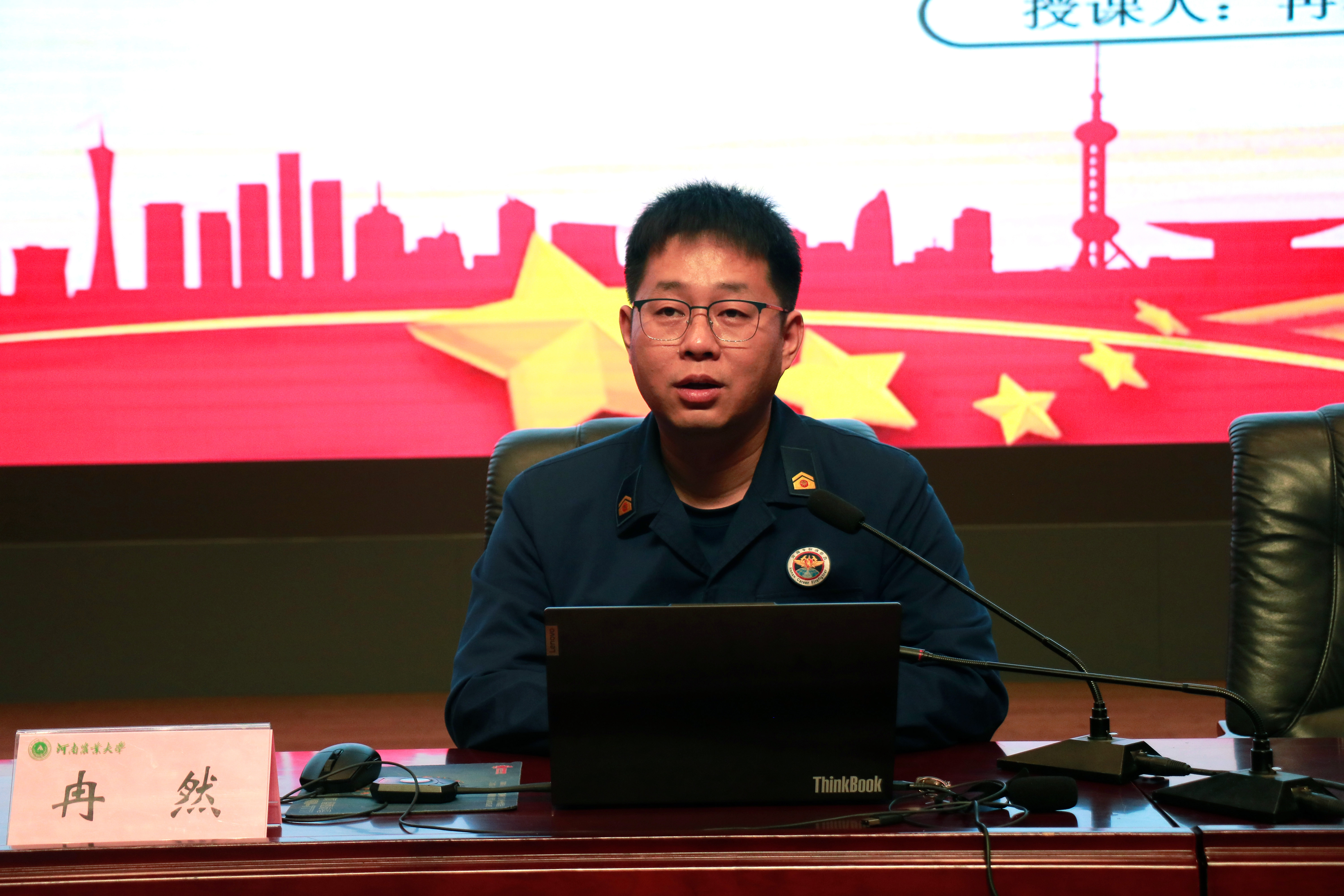 校保卫处消防科科长周成伟主持讲座