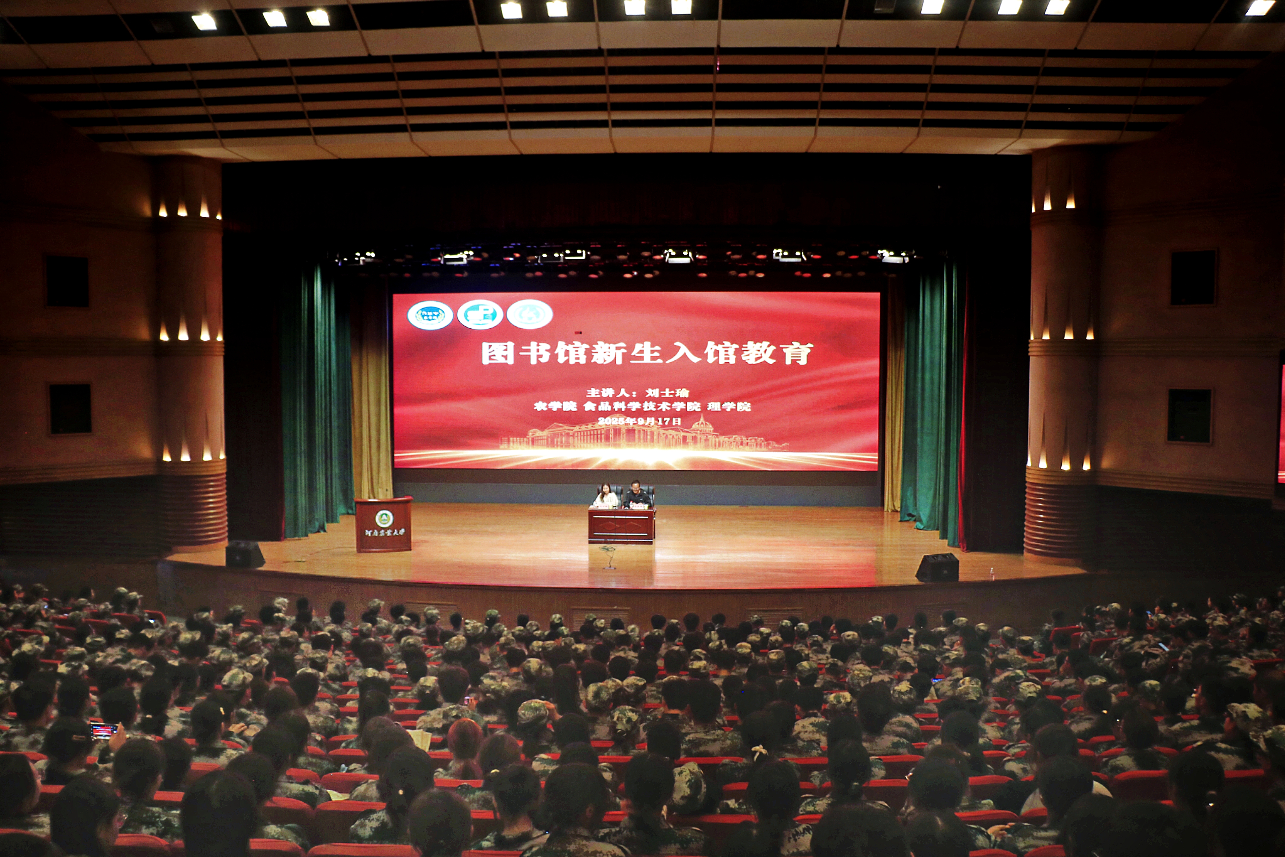 联合食品科学技术学院、理学院于文化路校区千人大礼堂举办2025级新生图书馆入馆教育讲座,三个学院全体2025级新生参加,校图书馆负责人刘士瑜主讲,由猫都论坛