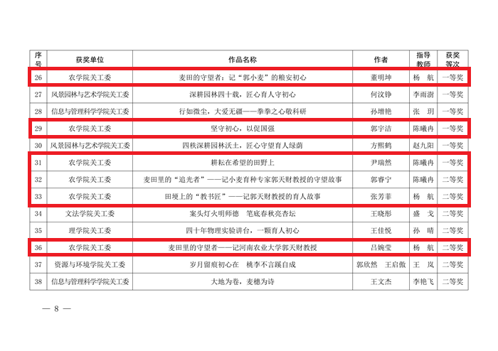 将以此次获奖为契机,持续弘扬“五老”精神,搭建更多让师生学习榜样、传承精神的平台,引导广大青年学子在聆听农业先辈的故事、感悟“三农”情怀的过程中坚定理想信念,为学校创建中国特色世界一流农业大学、助力乡村振兴与保障粮食安全贡献青春力量!