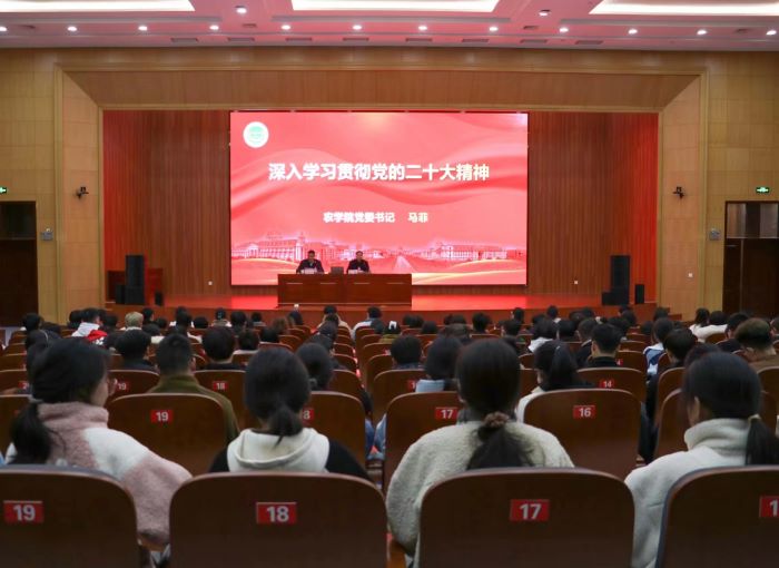 马菲以《深入学习贯彻党的二十大精神》为题,围绕“党的二十大主题及主要成果”“过去5年的工作和新时代10年的伟大变革”“马克思主义中国化时代化”“中国式现代化”“全面建设社会主义现代化国家的目标任务”和“坚持党的全面领导和全面从严治党”等六个方面对党的二十大精神进行深入系统解读,并紧密结合学院实际,对党的二十大关于教育、科技、人才工作的部署进行了重点阐释。