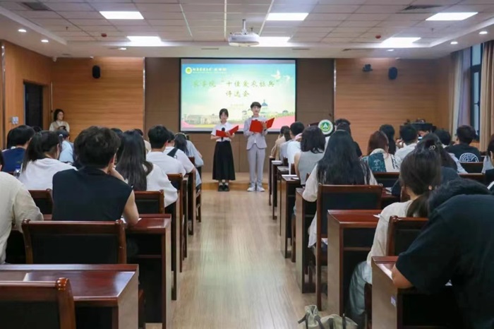 于龙子湖校区第一实验楼南321会议室开展“十佳爱农标兵”评选活动。院团委书记朱瑞萍、院团委副书记唐朝、院团委副书记陈曦冉及2021级、2022级各班评委代表担任本次活动的评委,来自2021级、2022级的15位候选人参与此次评选。