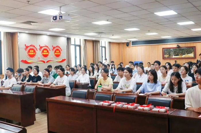 贾磊为第七期青马班学员授旗,希望学员积极响应时代号召,到基层去学习,在服务中奉献社会,在实现中华民族伟大复兴中国梦的新长征路上奋勇搏击。与会领导老师为第六期青马班优秀学员代表颁发荣誉证书,为第七期青马班学员代表授书,希望学生坚持理论联系实际,切实提升履行职责的能力和水平,不断夯实政治根基;上好每一堂课、读好每一本书,强化实践锻炼,珍惜宝贵的学习机会并圆满完成本次培养班的各项学习任务。方芳勉励同学们通过培训能有所收获,“把论文写在土地上”,在未来勇担重任,成为栋梁之才。