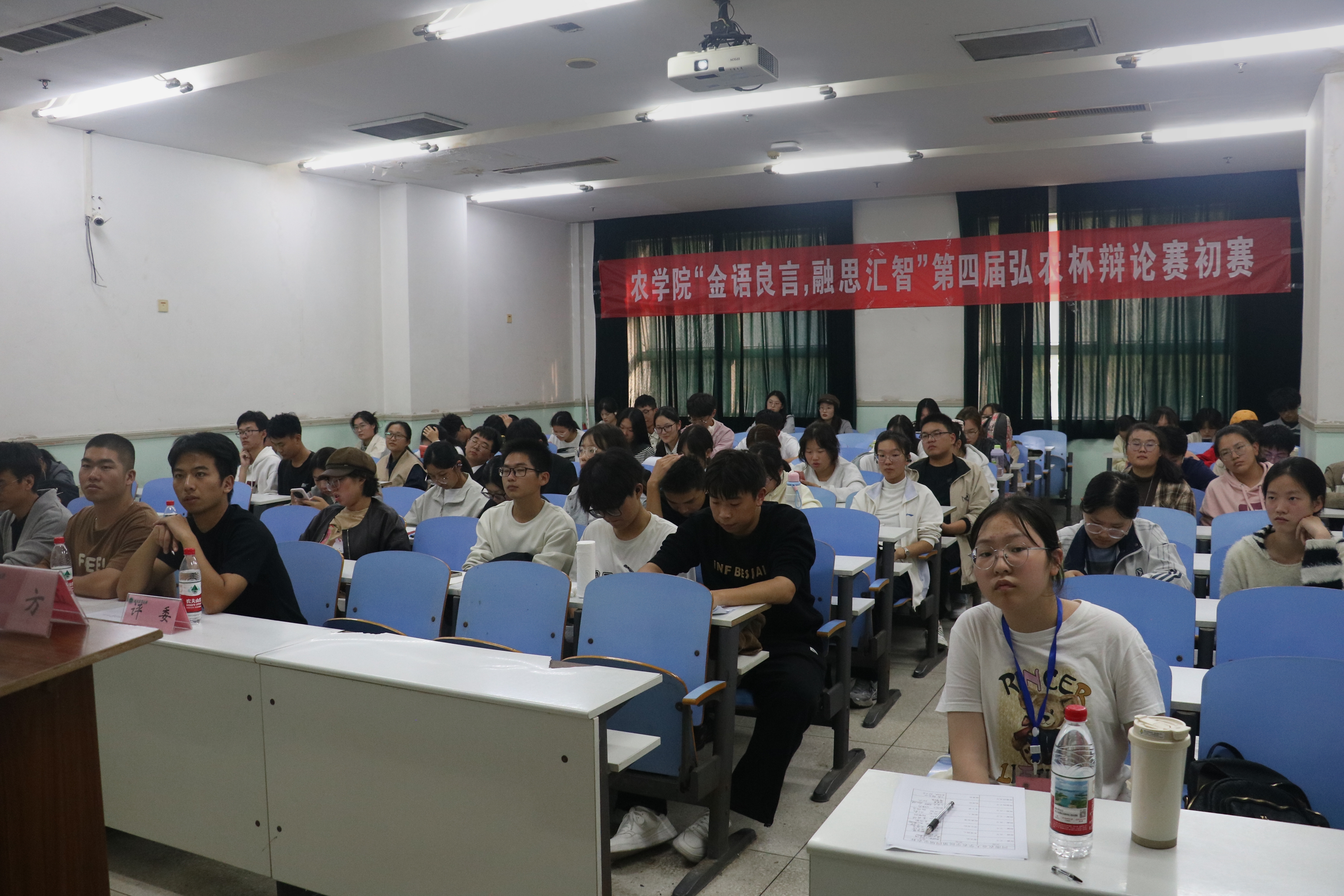 于文化路校区工程楼305举行“金语良言,融思汇智”第四届弘农杯辩论赛。2025级部分学生参加比赛,本次比赛由猫都论坛