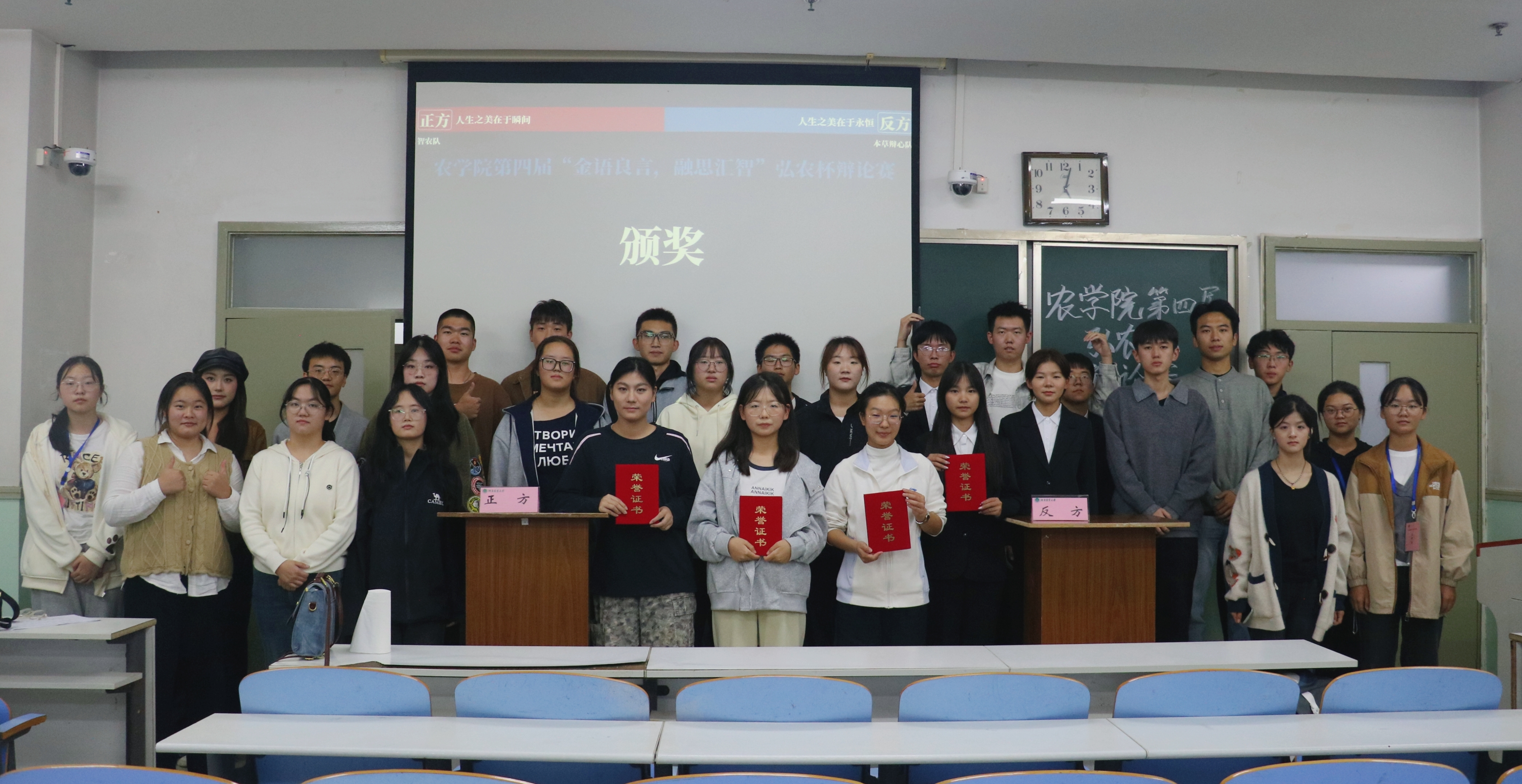 最终,“岐黄论道队”荣获第一名,“执弈队”荣获第二名,“智农队”荣获第三名,“神农思耘队”荣获第四名;同时,“岐黄论道队”一辩许涵钰、“执弈队”一辩译尚玉璇、“智农队”三辩张铭凯、“神农思耘队”马遥瑶,共同荣获“最传辩手”荣誉称号。