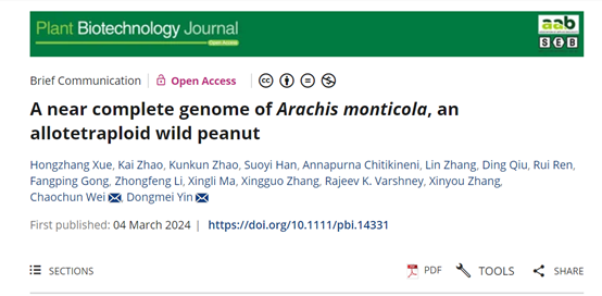 A near complete genome of Arachis monticola, an allotetraploid wild peanut”的研究成果。该研究结合ONT超长读段,二代测序和Hi-C等多种测序技术,发布了更新的近乎完整基因组Amon2.0版本。