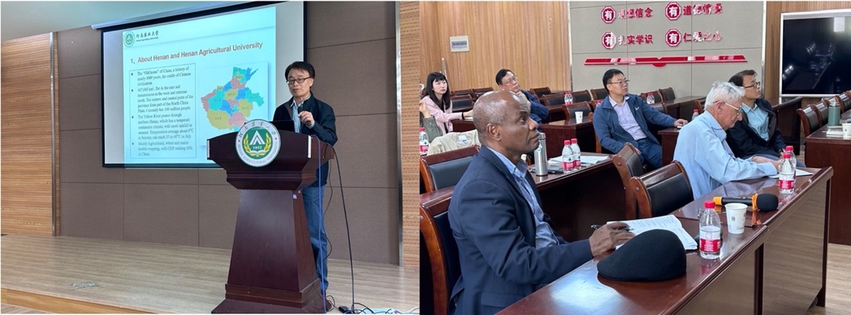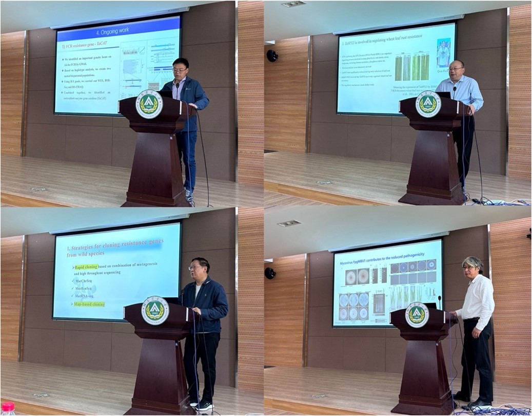 陈锋教授、郑文明教授、刘文轩教授、丁顺利教授分别就各自课题组开展的作物生物与非生物胁迫研究方向相关课题进行了介绍,尤其是在小麦抗条锈病基因、抗茎基腐病基因克隆与功能研究、小麦叶锈菌基因组学、小麦抗白粉病基因克隆与功能研究以及真菌病原菌与寄主互作等多个研究课题的最新进展方面与McIntosh院士和Lagudah院士进行了多学科多角度的深入的交流与探讨。
