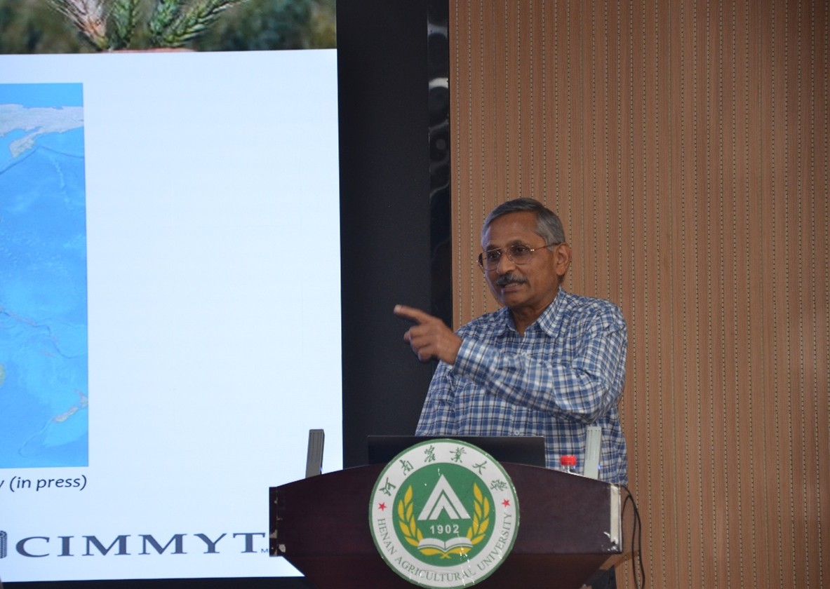 Ravi Singh博士首先结合CIMMYT全球合作网络的经验,分享了“Achieving durable rust resistance in practice”专题报告。他通过数据展示了抗锈病小麦品种在印度、巴基斯坦等地的田间表现,并指出“未来育种需兼顾产量潜力、抗性资源利用效率与农民实际需求”。作为推动“绿色革命”小麦品种升级的核心科学家,Singh博士还就如何构建产学研一体化合作模式、加速品种落地与师生展开讨论。