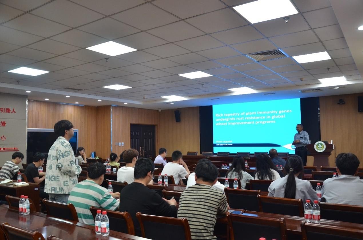 在交流环节,参会师生踊跃提问,议题涵盖抗性基因挖掘技术手段、小麦种质资源跨境共享机制等。两位专家结合自身经历,鼓励青年科研人员“以问题为导向,立足本土需求,融入国际平台”。