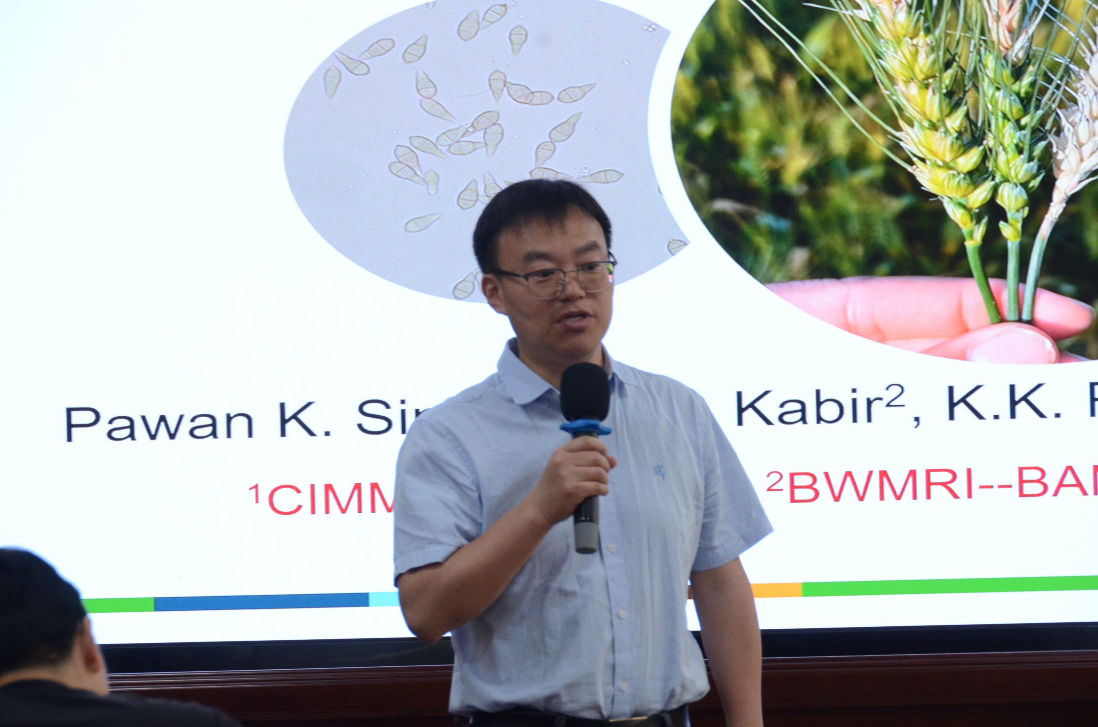 Pawan Singh教授分享了“Wheat blast — a global status update”专题报告。他通过数据展示了气候变化可能导致小麦病害如条锈病的传播和对全世界小麦产量的影响,指出中国已成功开发出抗条锈病的小麦品种,中国和印度正在通过建立监测平台和进行国际合作研究积极应对可能的病害威胁。并就中国2023年小麦全球产量第一但是出口并非第一的问题与师生展开了讨论。