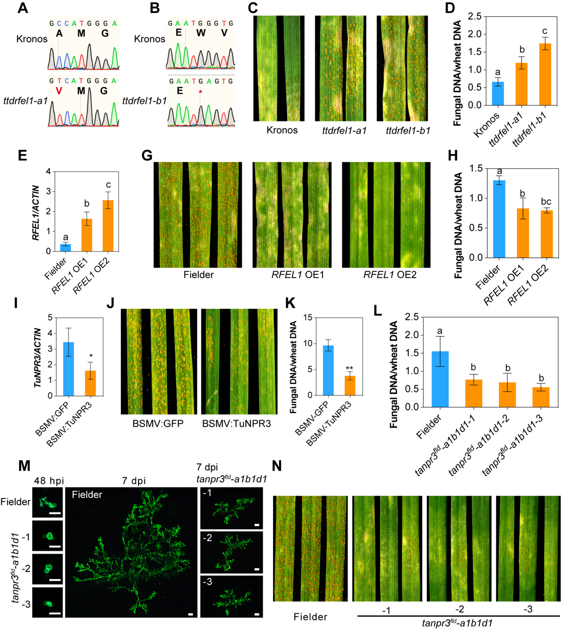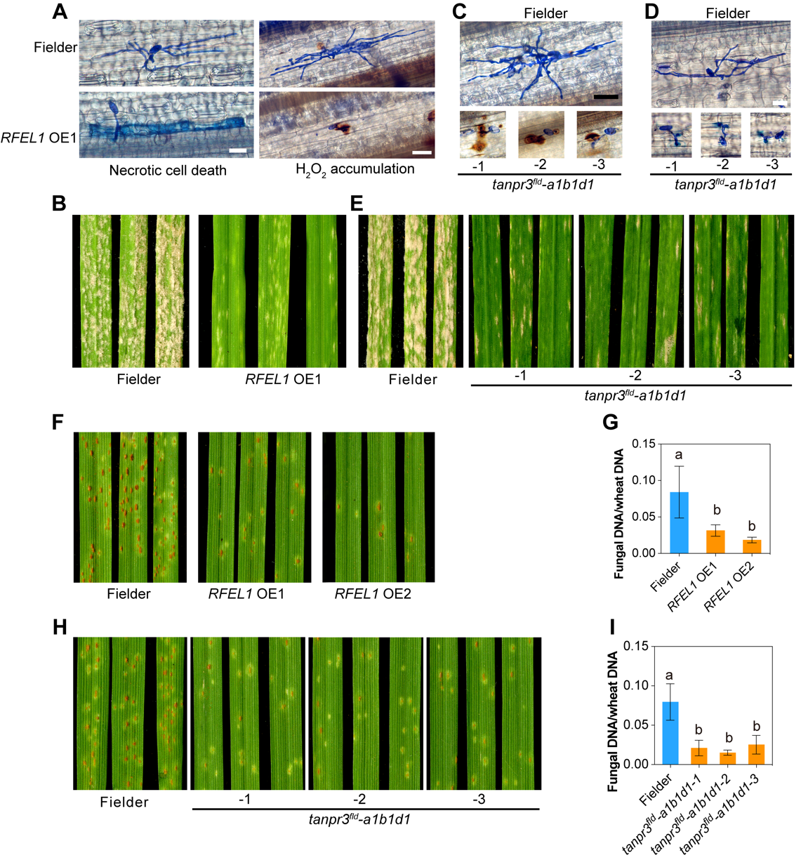 图3. RFEL1-NPR3介导小麦对白粉病和叶锈病的广谱抗性