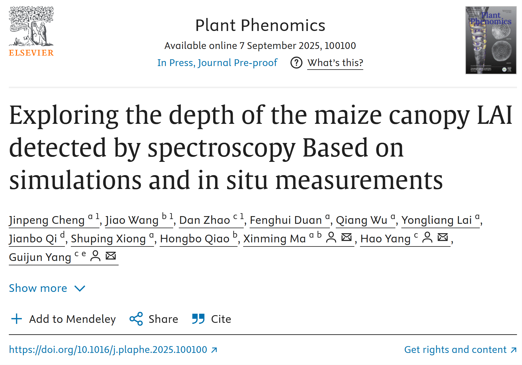近日,马新明教授团队在国际期刊《Plant Phenomics》(中科院一区TOP,IF=6.4)在线发表了题为“Exploring the depth of the maize canopy LAI detected by spectroscopy based on simulations and in situ measurements”的研究论文。研究通过融合三维辐射传输建模与无人机遥感技术,系统揭示了玉米冠层叶面积垂直分布的遥感探测深度规律,为作物生长精准监测提供了新方法与理论支撑。