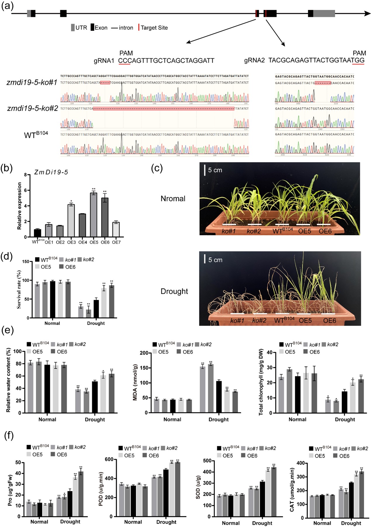 图1. ZmDi19-5增强玉米对干旱胁迫的耐受性