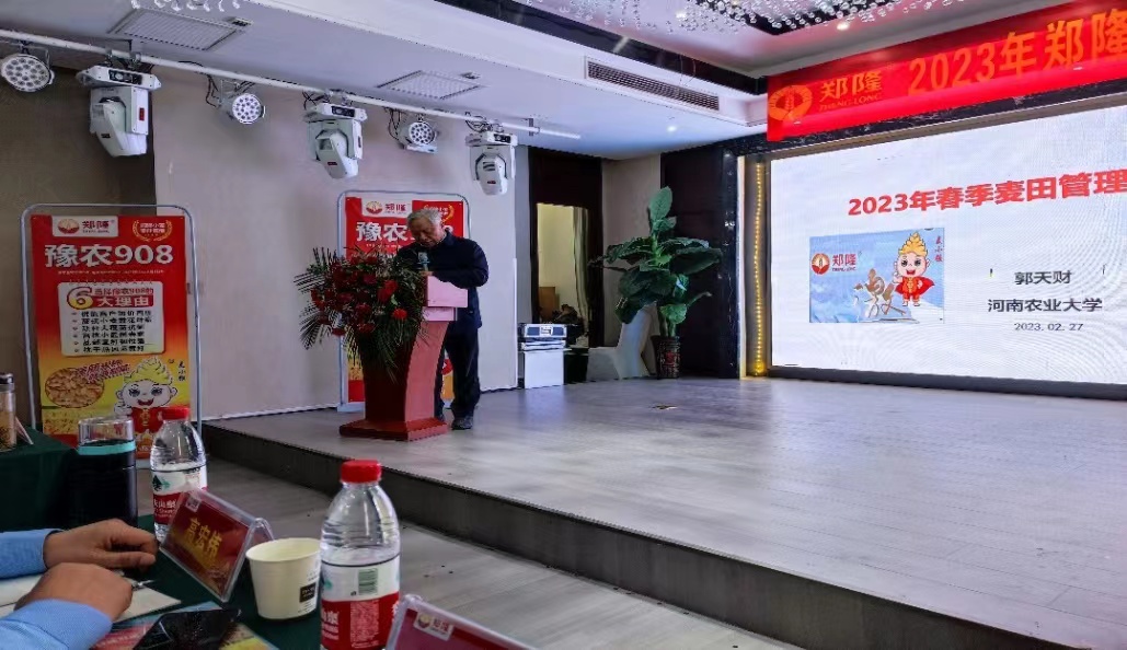小麦专家郭天财教授、殷贵鸿研究员和唐建卫副研究员与河南宝景农业科技有限公司联合,在平原示范区举行小麦春季麦田管理技术培训会,来自河南、安徽和江苏省的种粮大户、家庭农场、基层农业技术员和种子代理商130多人参加培训。