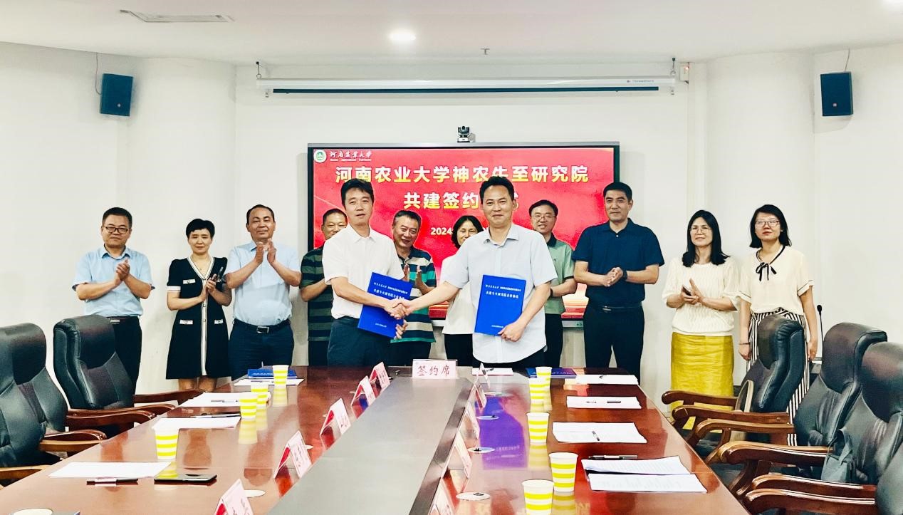 夏至和王晓东分别代表学校和河南神农道地药材有限公司签订了共建协议。