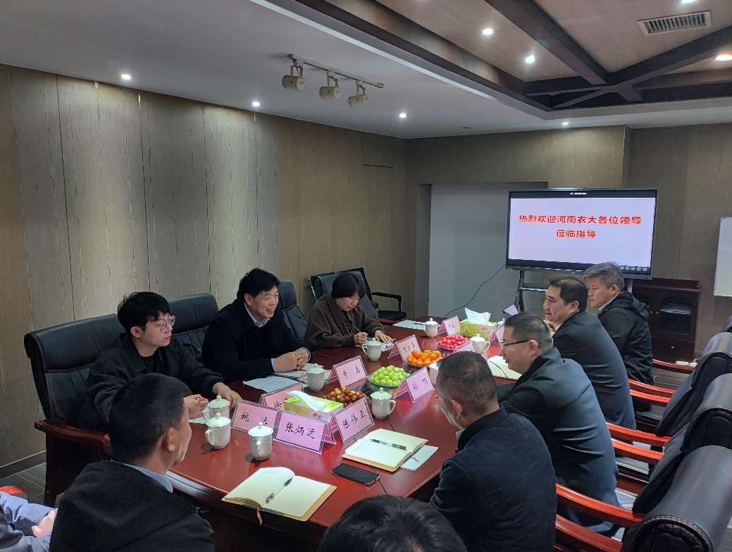 智慧农业系主任熊淑萍教授介绍了团队在小麦智慧农场、粮食生产主环节信息化关键技术及专业人才培养方面的工作,随后双方围绕河南智慧农业产业建设与技术推广就各自的优势展开洽谈交流,为双方更进一步的深度合作奠定了基础。