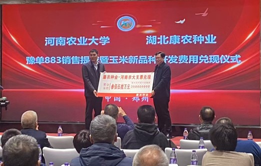 与湖北康农种业股份有限公司玉米品种豫单883提成兑现与新品种市场开发授权签约仪式在郑州举行。猫都论坛