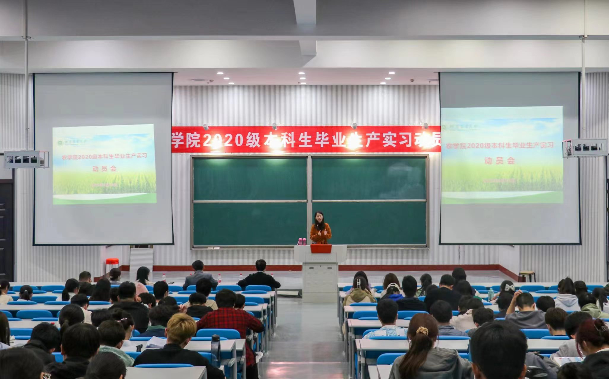 于龙子湖校区教学楼大教室2召开2020级本科生毕业生产实习动员大会。副院长李浩川、院团委书记朱瑞萍、教学秘书马兴立、教学干事范晨雨、院团委老师李玥瑞及2020级全体学生参加了此次会议,会议由马兴立主持。