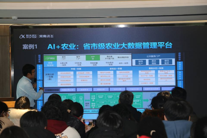 公司技术代表为与会师生展示了科大讯飞(河南)在甘肃武威研发的农产品生产和管理系统。
