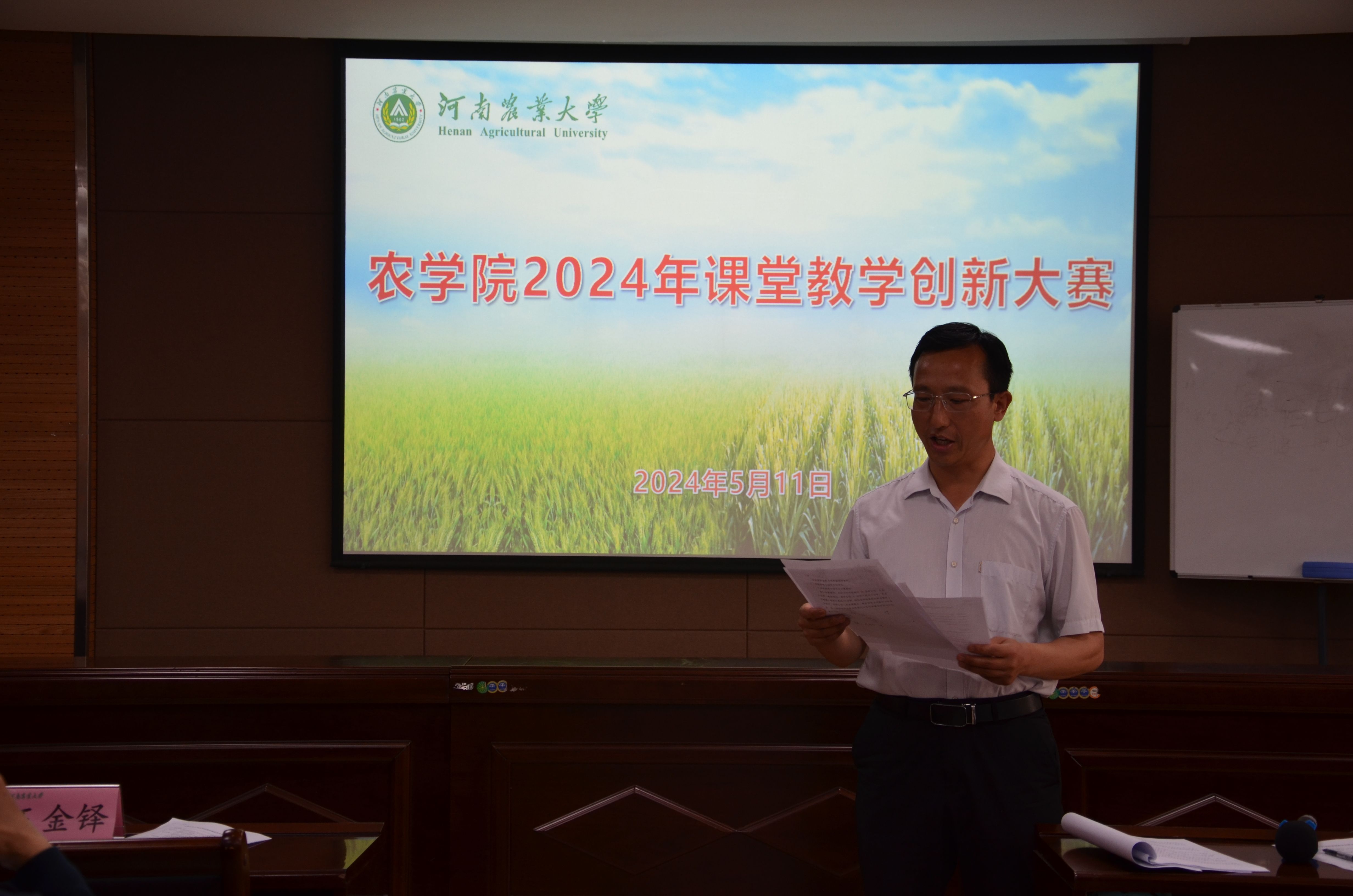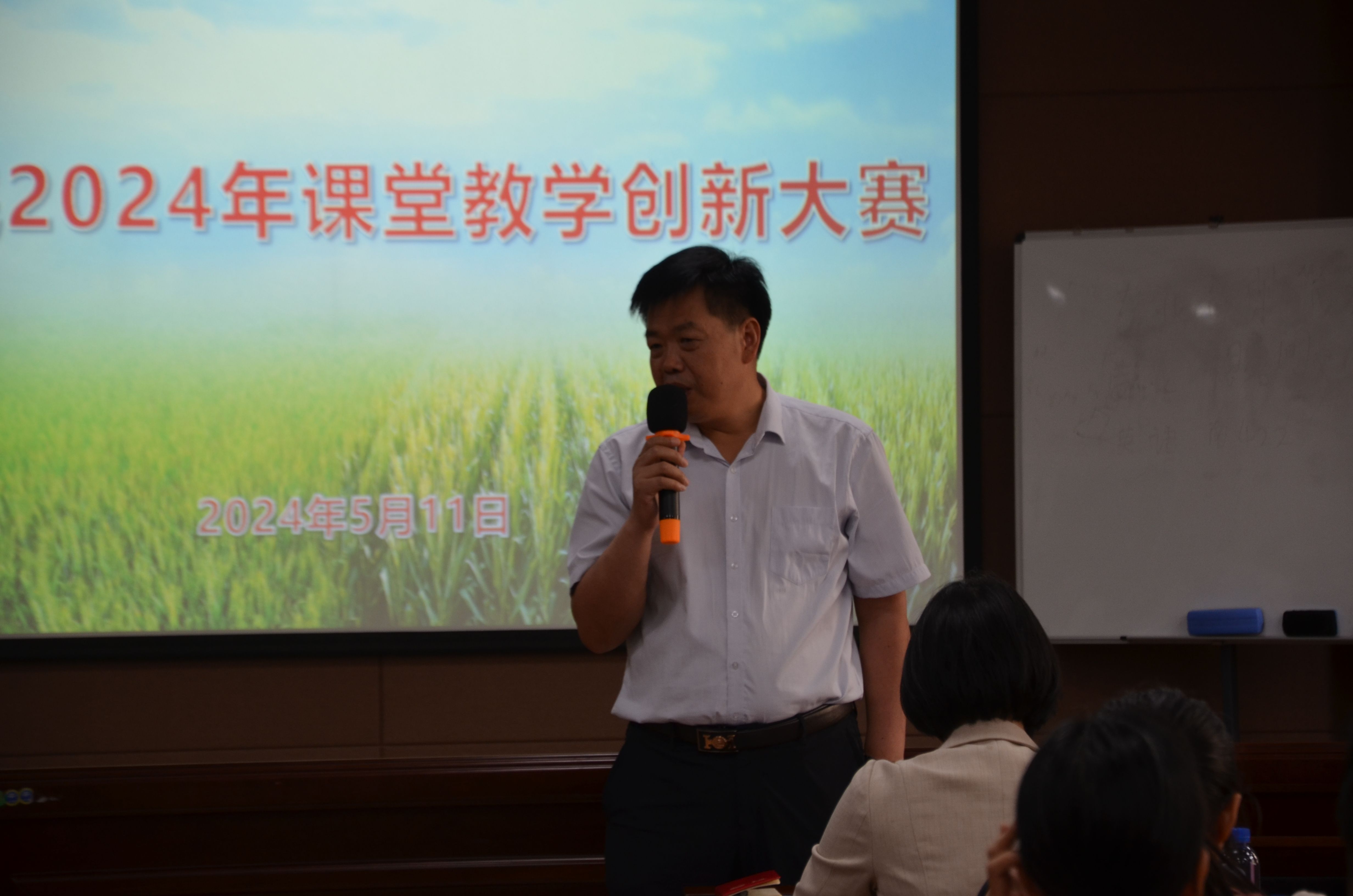 2024年度课堂教学创新大赛。特邀请教务处副处长王金铎,校教学督导赵会杰,院教学督导胡彦民、马宗斌、周苏玫、李连珍,河南省本科高校教师课堂教学创新大赛特等奖获得者食品科学技术学院教师李倩,各系主要负责人及学生代表担任比赛评委。院党委书记贾磊出席本次大赛,新进青年教师观摩比赛。大赛由副院长李浩川主持。