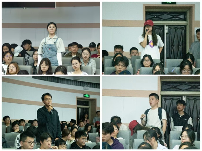 交流环节,学生们踊跃举手提问,领导老师们认真倾听并结合专业知识、行业经验和学校实际情况,细致地进行解答。