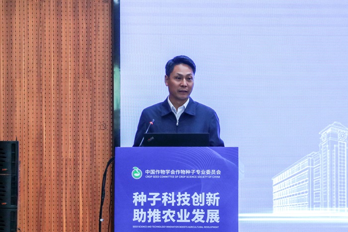 对本次会议的支持表示肯定,接着介绍了中国作物学会作物种子专业委员会的作用和地位,希望各位代表通过本次学术会议有所收获,有所启迪,在学术和智慧的判断中突破创新思路,为实现我国农业振兴做出更大贡献。最后,希望作物种子专业委员会和大家协同发展,互促互长。