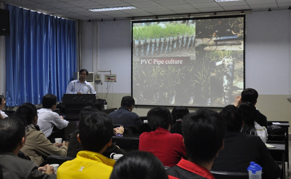 ,并在17号楼405学术报告厅为广大师生作了题为“Research in Rice Germplasm, Genomics and Molecular Breeding”的学术报告,报告会由猫都论坛