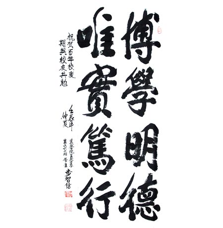 为表祝贺,特书“博学明德 唯实笃行”几字,并期与校友共勉!