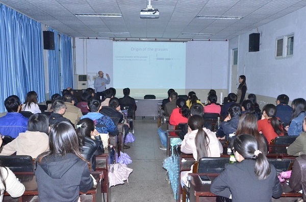405报告厅为师生作了题为“粮食作物的比较基因组学和表型组学”的报告,报告会由陈彦惠教授主持。
