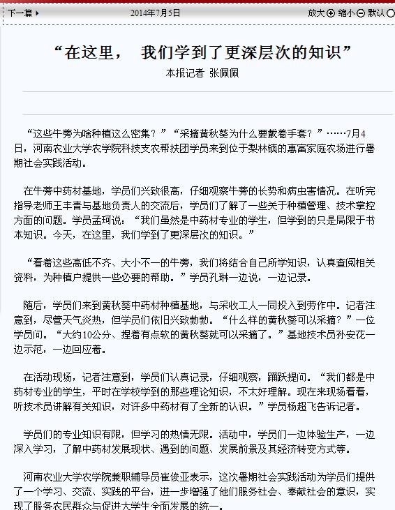 “在这里,我们学到了更深次的知识”(济源日报2014年7月5日)