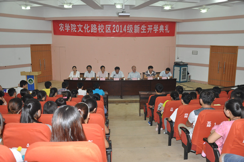 分别在文化路校区和龙子湖校区举行2014级新生开学典礼。学院领导班子、教师代表、新生班主任、助理班主任、军训教官及2014级新生参加。典礼由院党委副书记贾磊主持。