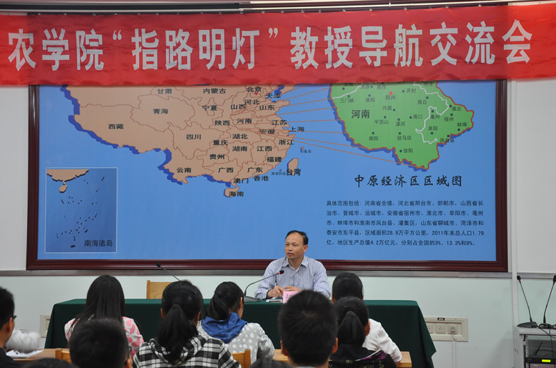 交流会上,胡彦民教授用自己的经历给同学们以启发,耐心解答同学们事先准备好的问题。这些问题中多数是关于农业发展的,同学们又多以自己家乡为例举出父辈们的种种疑惑向胡老师请教。胡老师以我校在方城县的综合实验区为例,详细讲解国家的最新农业政策和发展趋势。针对同学们提出的就业与考研、学习与兼职、学习与工作等共性问题,胡老师以往届学生为例给出了自己的宝贵建议。交流会气氛活跃,掌声不断,同学们纷纷表示胡老师的话语给他们以很大的启发,使他们对农业的未来、专业的学习和个人的发展充满了信心。
