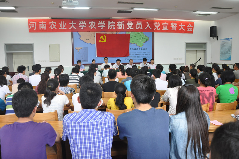 在工程楼协同创新中心报告厅隆重举行新党员入党宣誓大会。校党委组织部副部长侯金超,院党委委员黄松、林同保、贾磊、杨百黎、刘宗华、易振出席大会。学院130名新党员和部分入党积极分子参加了大会。大会由院党委副书记贾磊主持。