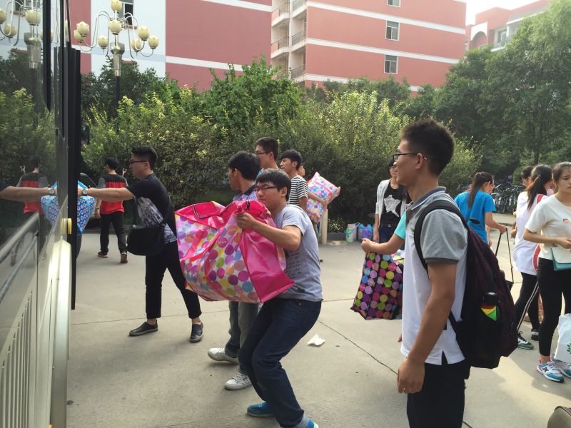 5日上午,按照计划,领导老师分为两队,一队在龙子湖校区,统一安排学生装行李、安全上车;一队在老校区桃李园公寓,组织学生集中搬卸运送行李、分发宿舍钥匙及做好接待等。搬迁共分三批进行,从早上6点30开始,至下午3点结束。