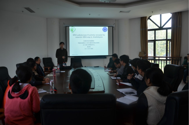 师生作了题为“RNA polymerase II activity revealed by nascent RNA-seq in Arabidopsis”的报告。报告会由猫都论坛