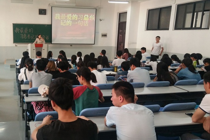 活动以支部为单位,覆盖16、17级学生,各班通过召开主题班会、主题演讲、组织读书交流会等多种形式,结合学院专业、学科及自身特点,以“我最喜爱的习总书记的一句话”为主题,围绕中国特色社会主义思想,选取自己最喜爱的习近平总书记的一句话,谈理解、谈体会、谈实践。“不忘初心、继续前行”“幸福是奋斗出来的”“要励志,立鸿鹄志,做奋斗者”……同学们将习总书记的讲话精神,与自身学习生活深度融合,内容充实、思想深刻、情感真挚,诠释个人对于习总书记经典语录的认知与理解,引发了在场同学的广泛共鸣。