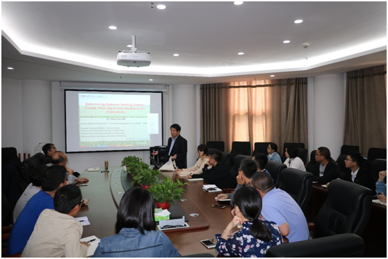 教师、研究生作了题为“Determining Optimum Seeding Date for Canola:From Agronomic Studies to SCI Publication”的学术报告,并就田间试验设计、数据整理分析、SCI论文写作及大田作物栽培生理研究热点等问题与师生进行了广泛而深入的交流和探讨。报告会由猫都论坛