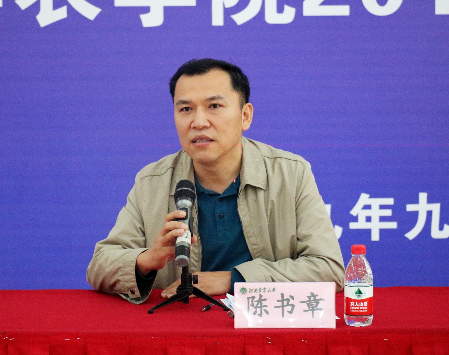 院党委书记陈书章做总结讲话。他寄语2019新生:一是要怀抱梦想,志存高远。他对同学们寄予了殷切的希望,期盼新生能够成为有远大理想、健康人格和体格、良好学习思考能力和实践创新能力的新时代大学生。二是要脚踏实地,求是力行。人生的目标和梦想都是要靠奋斗出来的,希望同学们牢记使命,严格要求自己,努力完成学业,用书本丰富自己,为今后的人生道路奠定坚实的基础。三是要坚守自己的专业,把专业学好学扎实。他表示只要努力就能取得卓尔不凡的成就,学农、爱农、懂农,为国家现代化农业贡献自己的力量。四是要明德自强,完善人格。在生活中学会感恩,把自己的梦想和国家、民族的梦想结合起来,砥砺前行,奋勇前进。最后祝他愿大家度过一个丰富的、无悔的大学生活。
