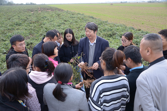 中药学学科带头人高致明教授带领支部青年党员对河南数十种药材的种植技术要点进行了详细的讲解。26日下午,党支部成员来到大刘镇闫魏村药材种植基地,在田间现场解决学员们在生产中遇到的难题。带着各种问题而来的农民企业家及药材种植户在老师们的耐心解答下,感觉茅塞顿开,现场气氛十分热烈。