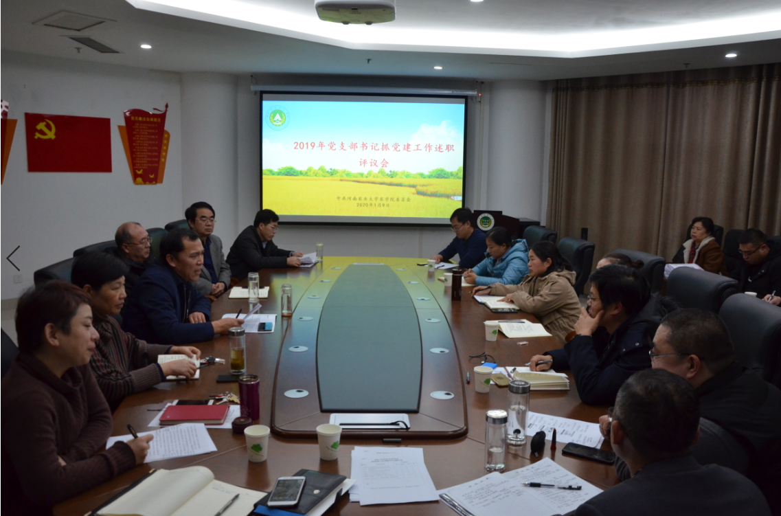 党委在龙子湖校区第一实验楼222会议室召开了2019年度党支部书记抓党建述职评议大会,院党委委员、各教工党支部支部书记、委员、教师党员代表。会议由院党委书记陈书章主持。