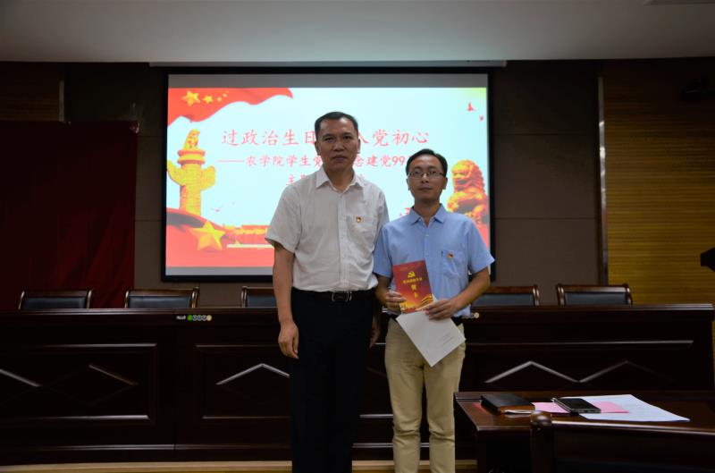 此次活动共分为信念永恒、誓言永恒、初心永恒三个环节。首先全体党员观看《永恒的信念》主题视频,坚定入党信念。接着全体学生党员重温了入党誓词,重温初心,牢记使命。随后,耕作生态与中药方向研究生支部的吕伟增同志、小麦生物技术方向研究生支部的李俊畅同志、玉米遗传育种方向研究生支部的赵倩男同志、作物科学技术专业学生支部的曹增辉同志重读入党志愿书,并结合自身的科研学习经历分享了他们成为党员后的思想变化,激励在座的学生党员砥砺奋进,一心向党。党委书记陈书章为其赠予党员政治生日贺卡。