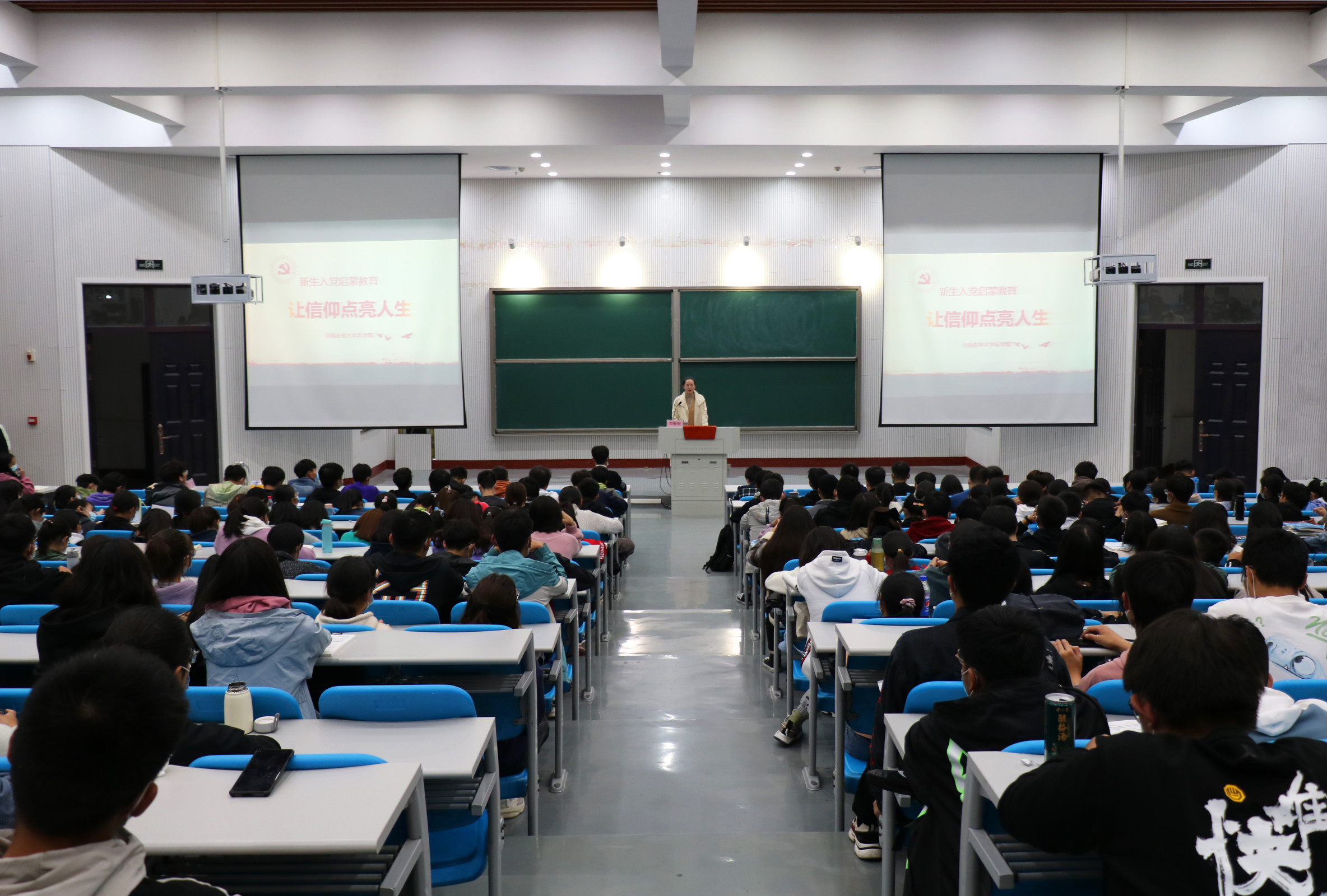 在龙子湖校区大教室二举办2020级新生党性启蒙教育活动,本次主题教育由猫都论坛