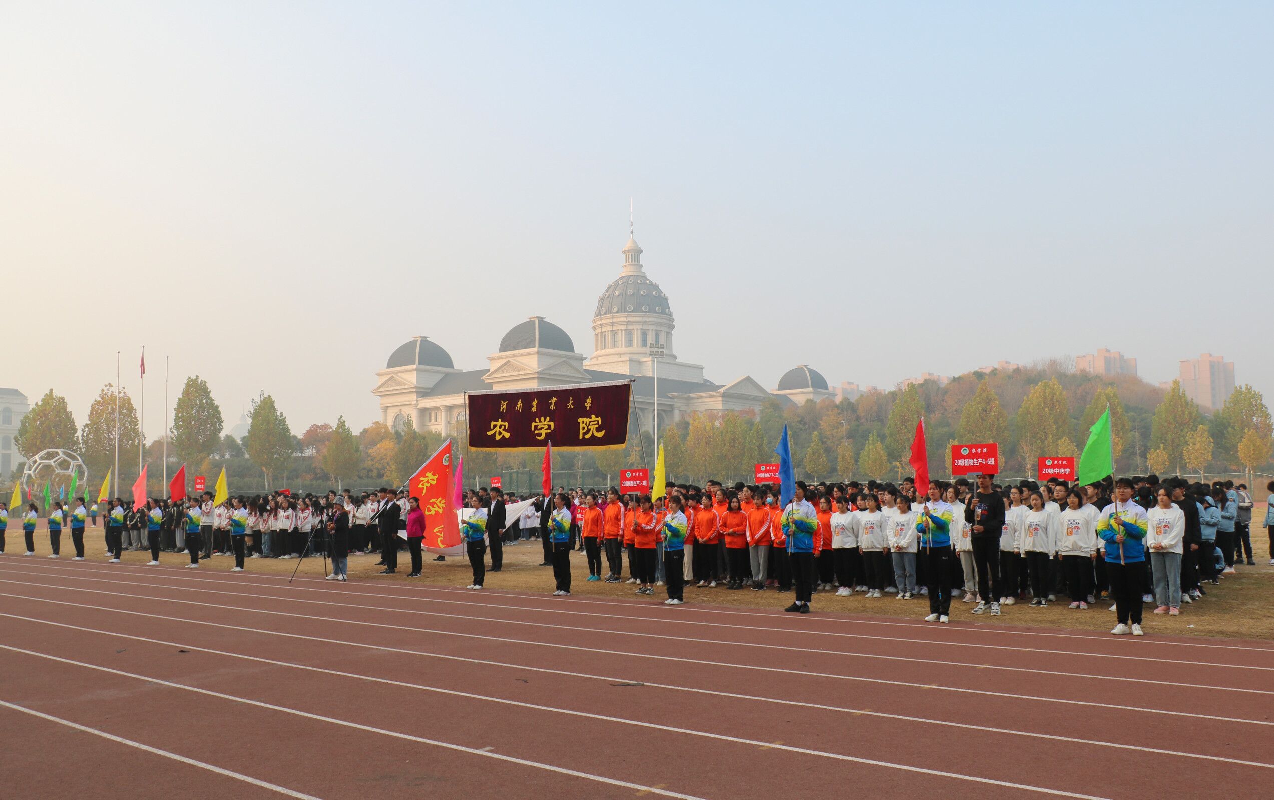 开幕式上,国旗班,彩旗队,2019级、2020级本科生,2020级研究生,教职工代表身着统一服装,步调一致,有序入场,充分展现了农院学子和教职工的活力。