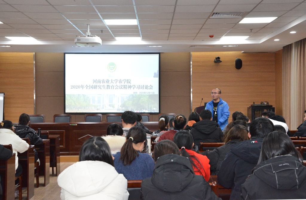 本次教育活动以主题班会的形式开展。首先由院研究生会主席高古腔同学领学了习近平总书记对研究生教育工作提出的重要指示精神、李克强总理、孙春兰副总理及陈宝生部长的重要讲话等。随后,参会同学积极发言、热烈讨论。大家分别结合自身经历、所研究领域的专业知识,对研究生的教育谈了学习体会和今后学习、工作打算。 大家一致认为:作为新时代的农科学子研究生,初心是“农大人热爱绿色,甘愿为农业奉献。”使命是“厚生丰民”,应担负起时代赋予我们的责任,将个人理想与国家、民族发展前途联系起来,为祖国的建设贡献力量。
