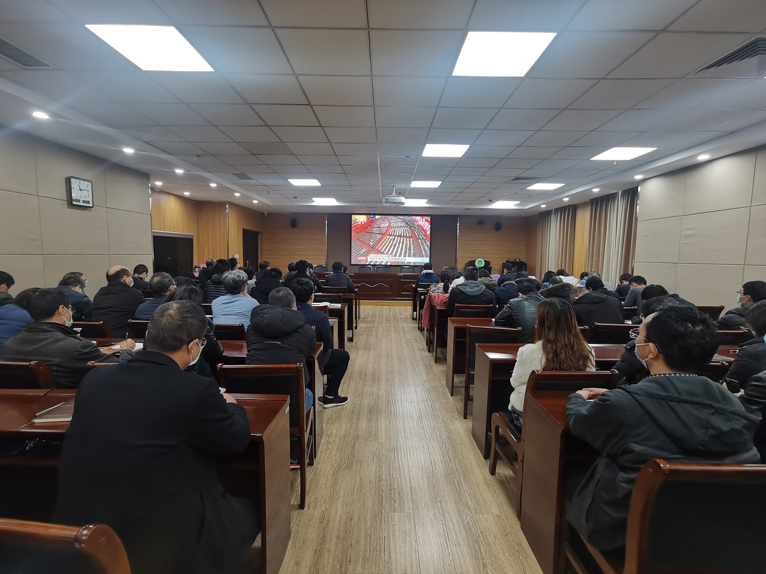 2月25日上午,学院组织全体师生收听收看全国脱贫攻坚总结表彰大会直播盛况。院领导班子全体成员和广大教职工在第一实验楼南321会议室集中收看本次大会的电视直播实况,深入学习习近平总书记在全国脱贫攻坚总结表彰大会上的讲话精神。各学生党支部、学生班纷纷组织学生党员和广大学生通过网络、电视、微博、微信、“学习强国”APP等多种形式收看了直播。