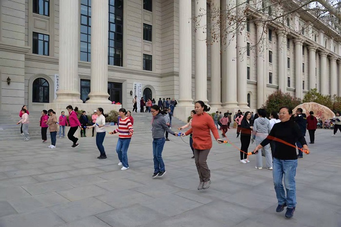 女教职工昂扬向上的精神风貌。学院全体教职工参加了活动。
