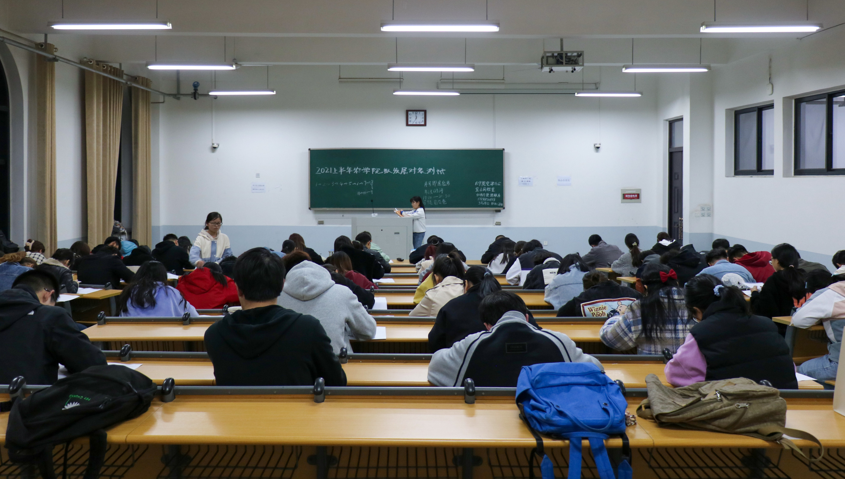 于3月29日晚在龙子湖校区教学楼D406、D412举行2021年上半年推选党员发展对象政治理论考试。各党支部推选的入党积极分子参加了本次政治理论考试,由学院党建部门负责监督考场秩序。