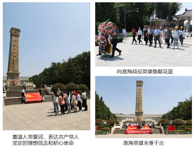 在雄伟壮观的淮海战役烈士纪念碑前,师生党员怀着对革命先烈崇高的敬意,向淮海战役英雄敬献花篮。在庄严肃穆的纪念塔前鞠躬、默哀,缅怀先烈。随后,党员们面对鲜红的党旗庄严地举起右拳,在作物生物技术系教工党支部书记李浩川的带领下重温入党誓词,字字千钧、句句铿锵,表达着共产党人坚定的理想信念和初心使命。