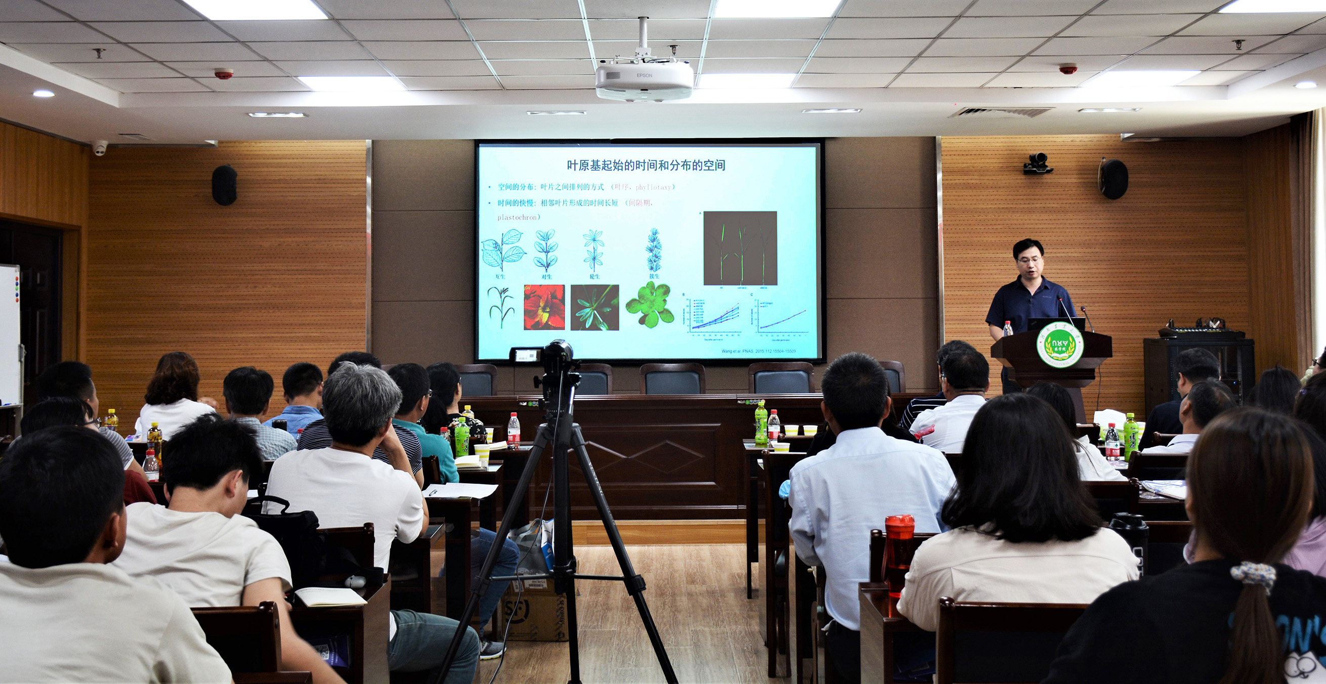 华中农业大学王磊副研究员以“水稻穗发育分子机理研究”为题,从苞叶(生殖转化后所产生的叶片)生长抑制角度,具体阐述了对侧生分枝动态发育模式的产生,同时提出决定作物产量性状形成和对其进行遗传改良的新观点和新思路。